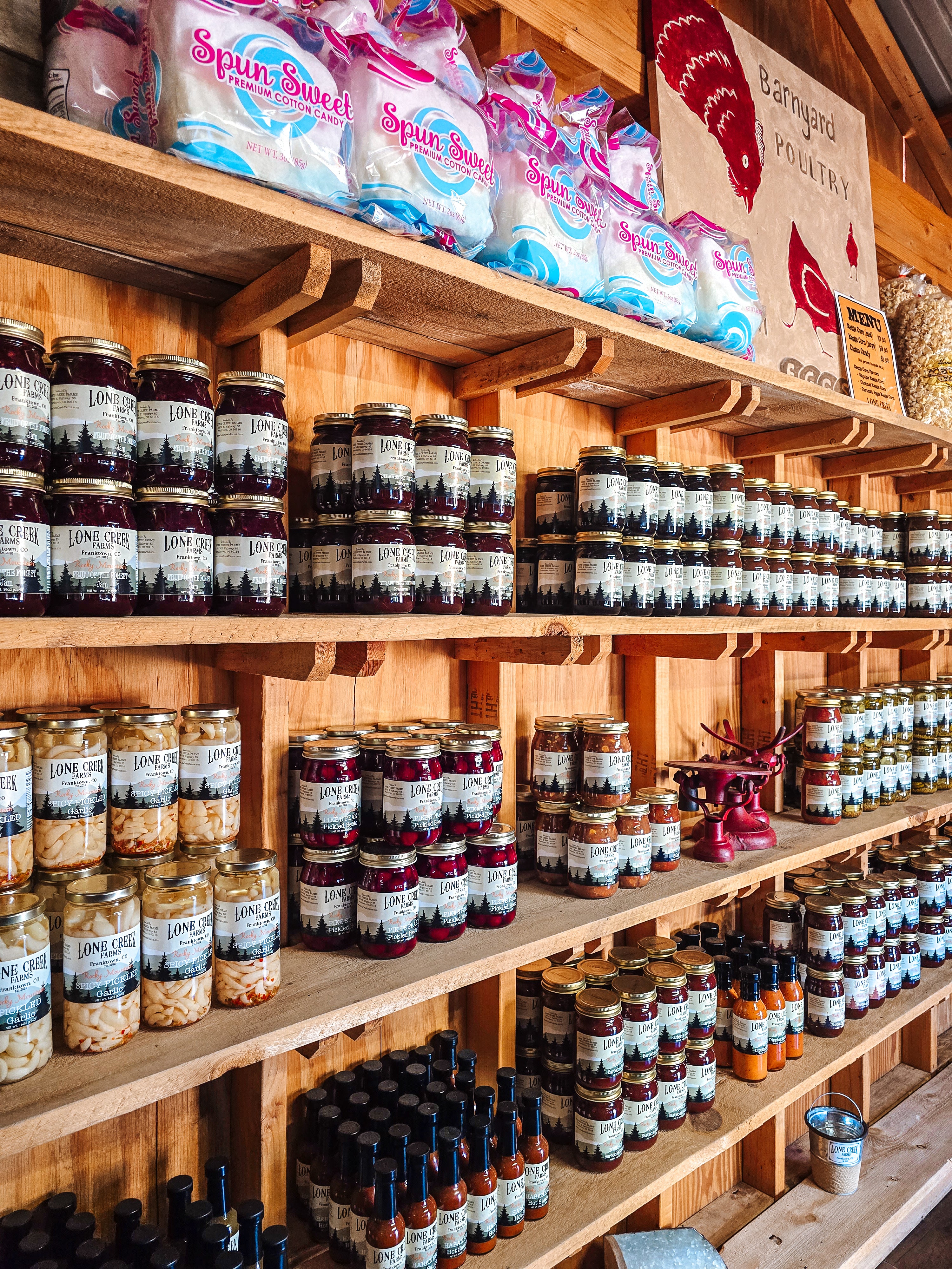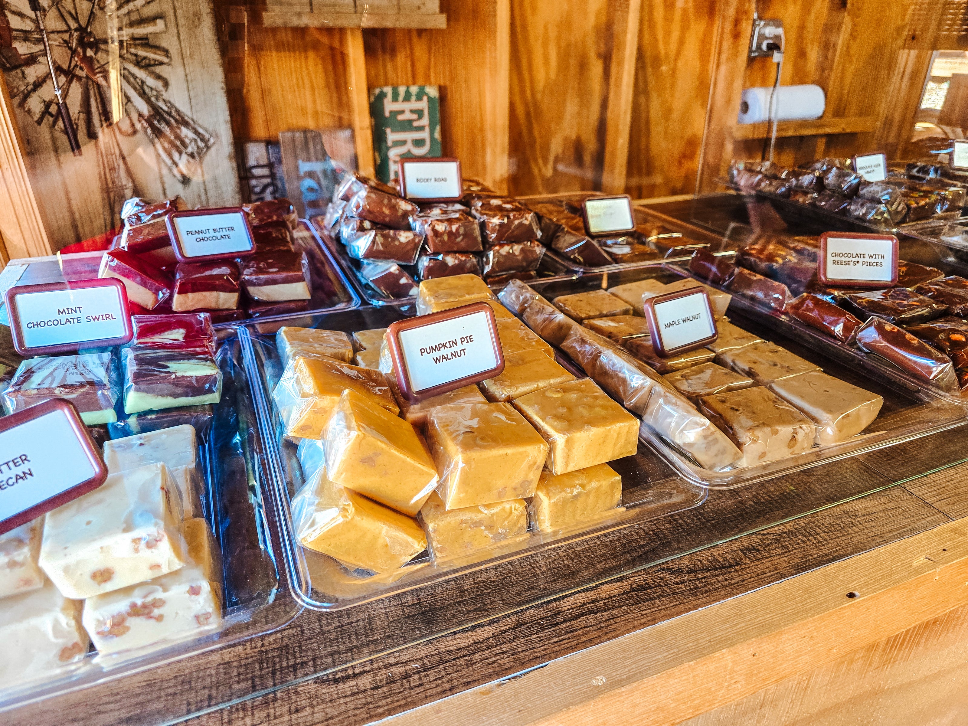 Discover delicious treats at our general store with canned jams and sauces, and homemade fudge!